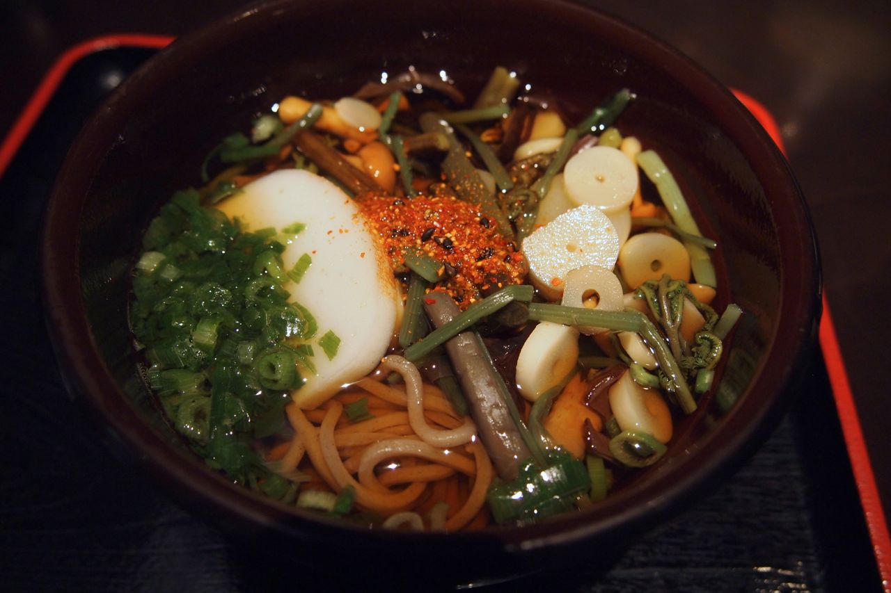 前回、カレーをいただいたので、山菜そばにしました。