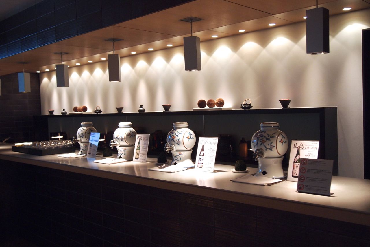 日本酒の利き酒コーナーは、羽田空港のANAラウンジにもありますよ。