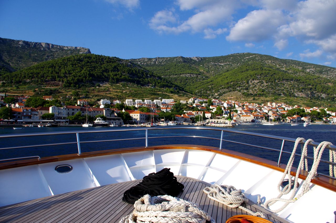 私はヨット巡りの中の一つの寄港地として訪れましたが、スプリットのフェリー乗り場から1時間くらいで行くことができます。