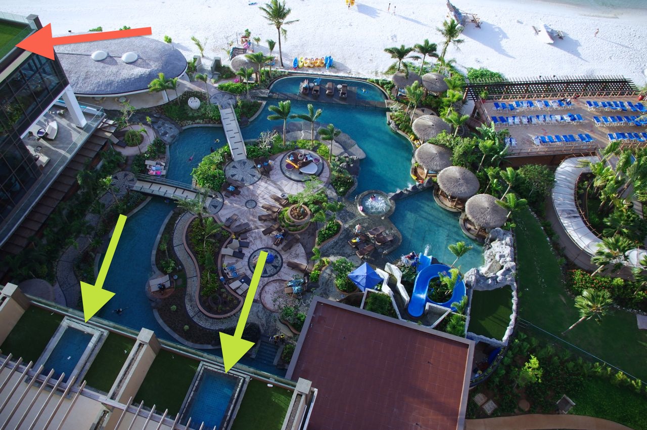 特にクラブラウンジでは見下ろすと、真下にビーチが広がる感じ。