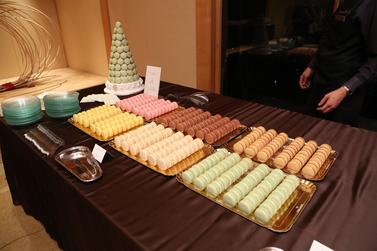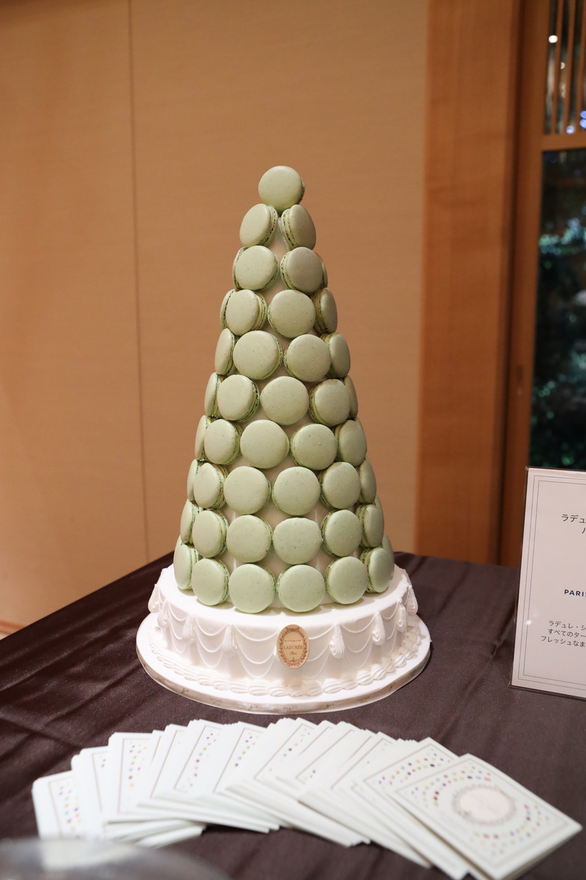 こちらはパリ空港公団とラデュレ提供のマカロンタワー!もちろん全て食べられます。
