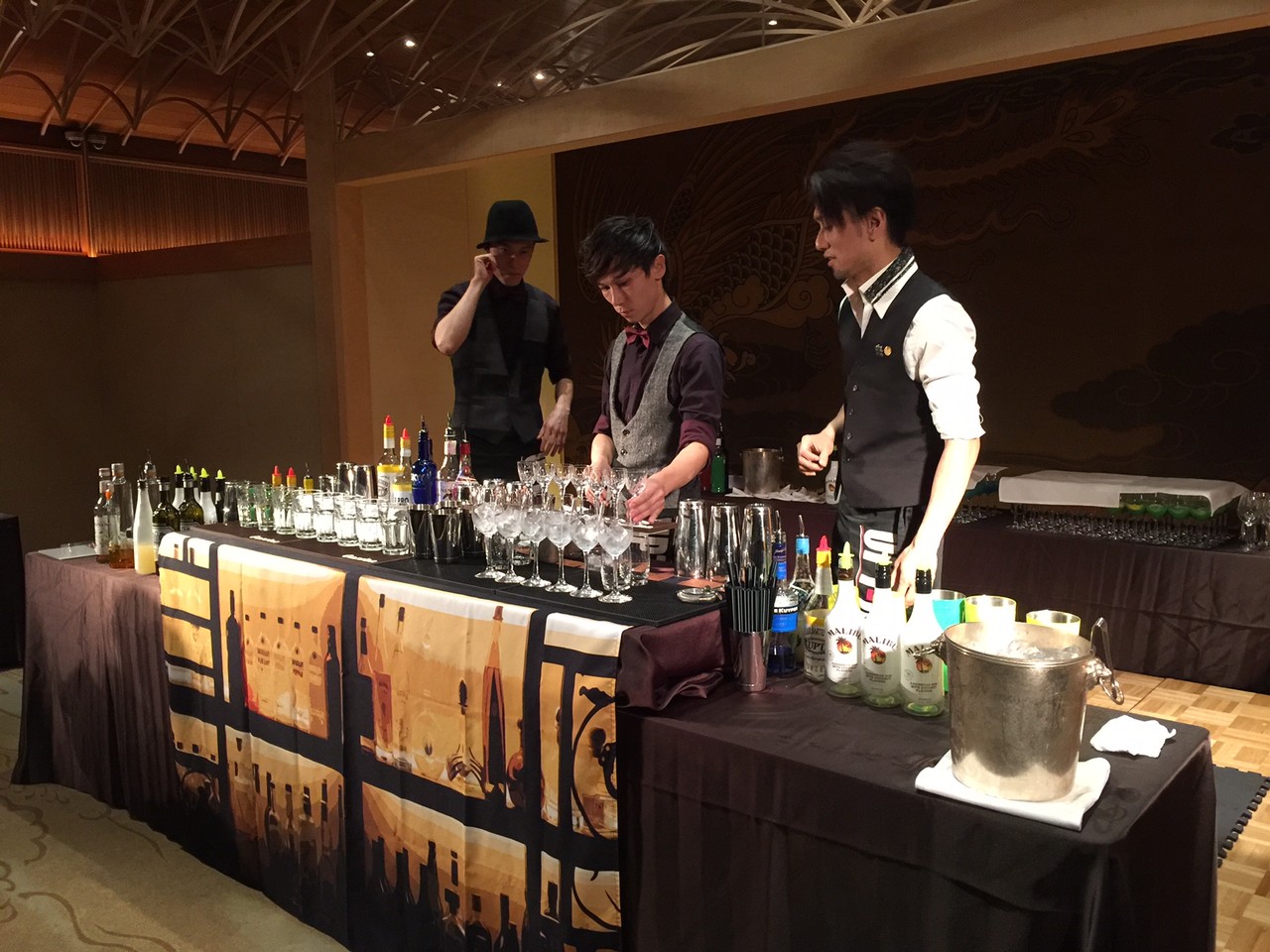 パーティの途中では、フレア・バーテンダーショーも。