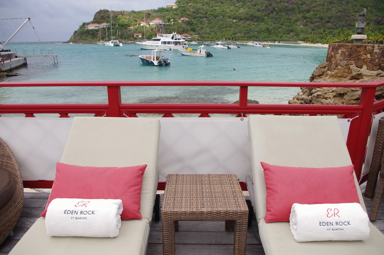 セントバース島エデンロック 「ジェームススイート」のリビングルーム、ベッドルーム、バスルームに続きましてプールとテラスです。