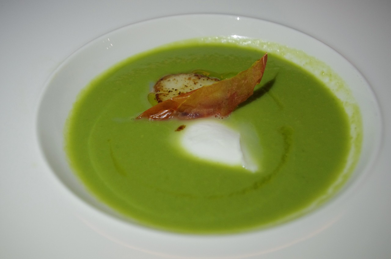 グリーンピースのスープは、中にモッツァレラ丸ごと入っていました。