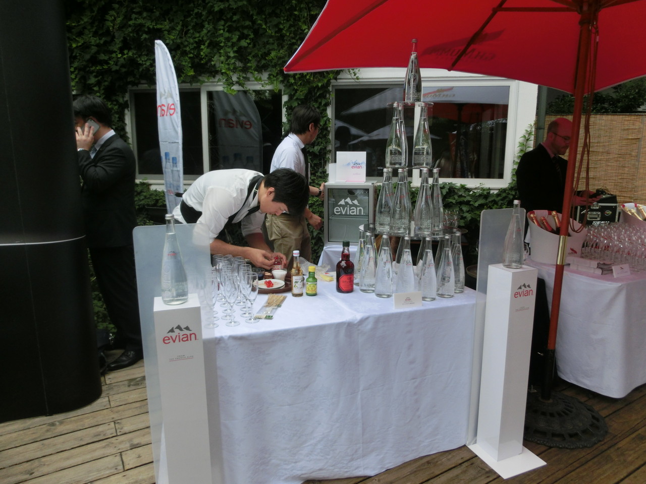 レセプションでは、 フランスらしくevianのカクテルが提供されたり、