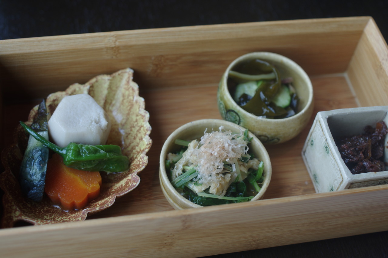 牛肉のしぐれ煮、おひたし、酢の物、お野菜の煮物。