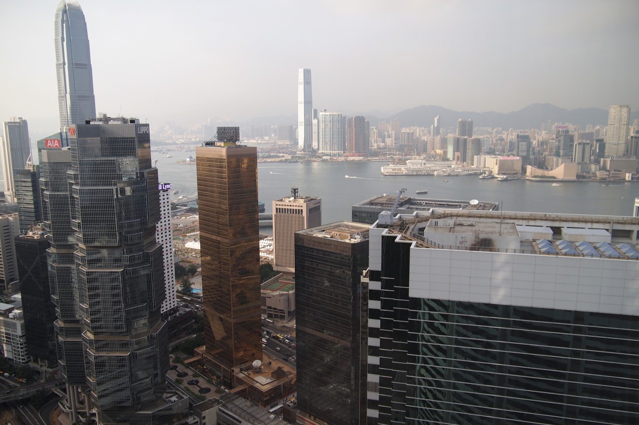 香港らしい景色。 香港の場合、どのホテルでも「ハーバービュー」のお部屋でしたら、そこまで大差はなく、景色を味わえるかなと思っています。リッツカールトンのように100階を越えてしまうと、日によっては雲で隠れて全く景色が見えないなんてことがありますが、、、