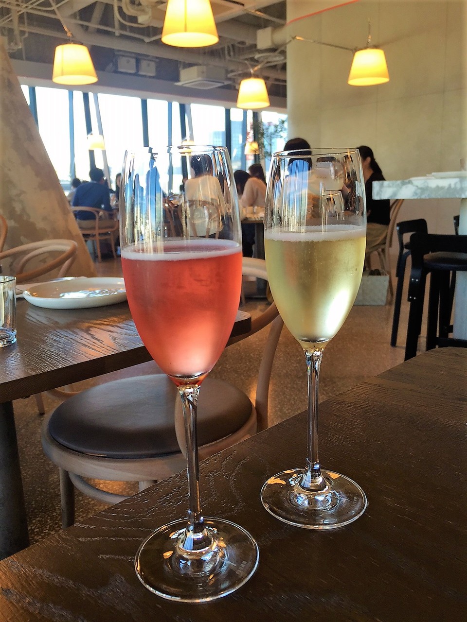 ギリシャのスパークリングワイン飲み比べ。聞かずに頼んでしまったけれど、私にはちょっと甘かった。女性が好きそう。