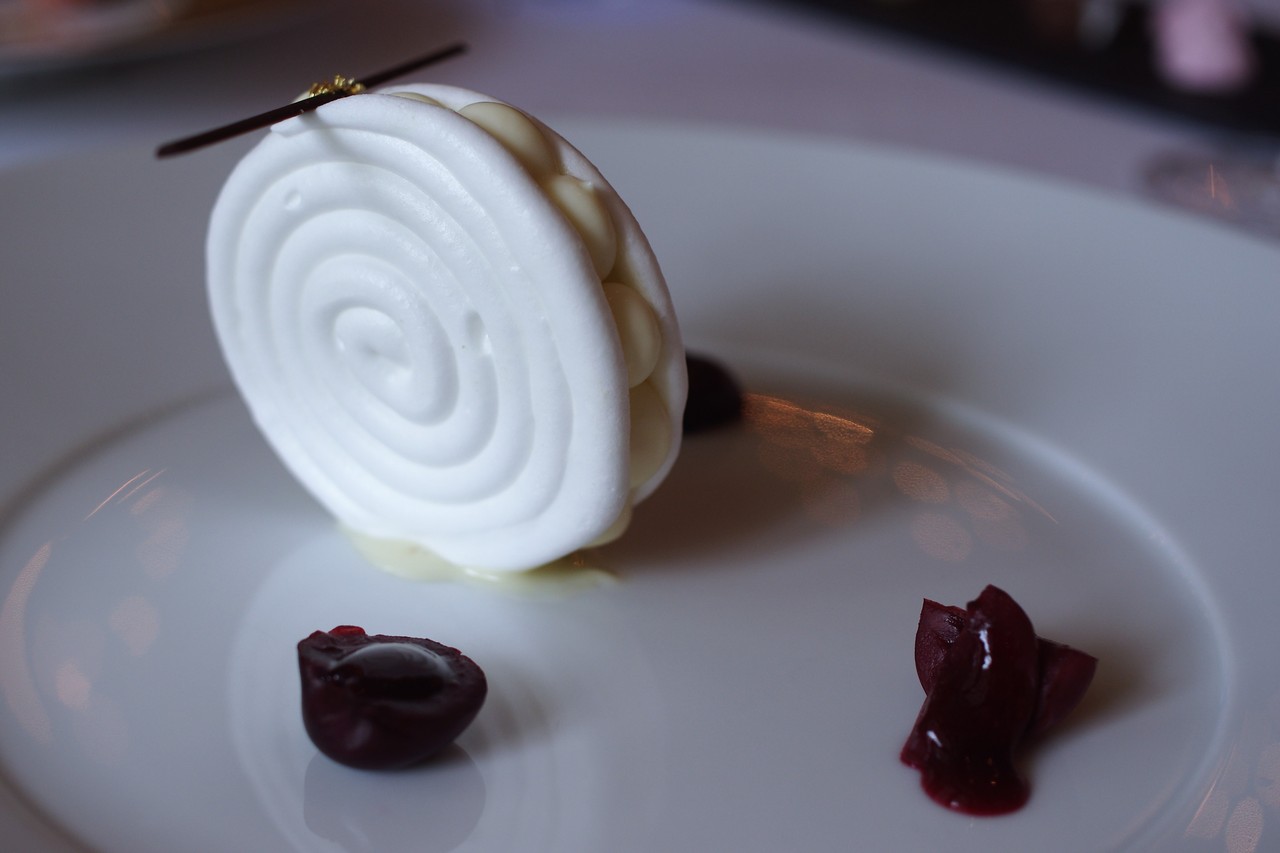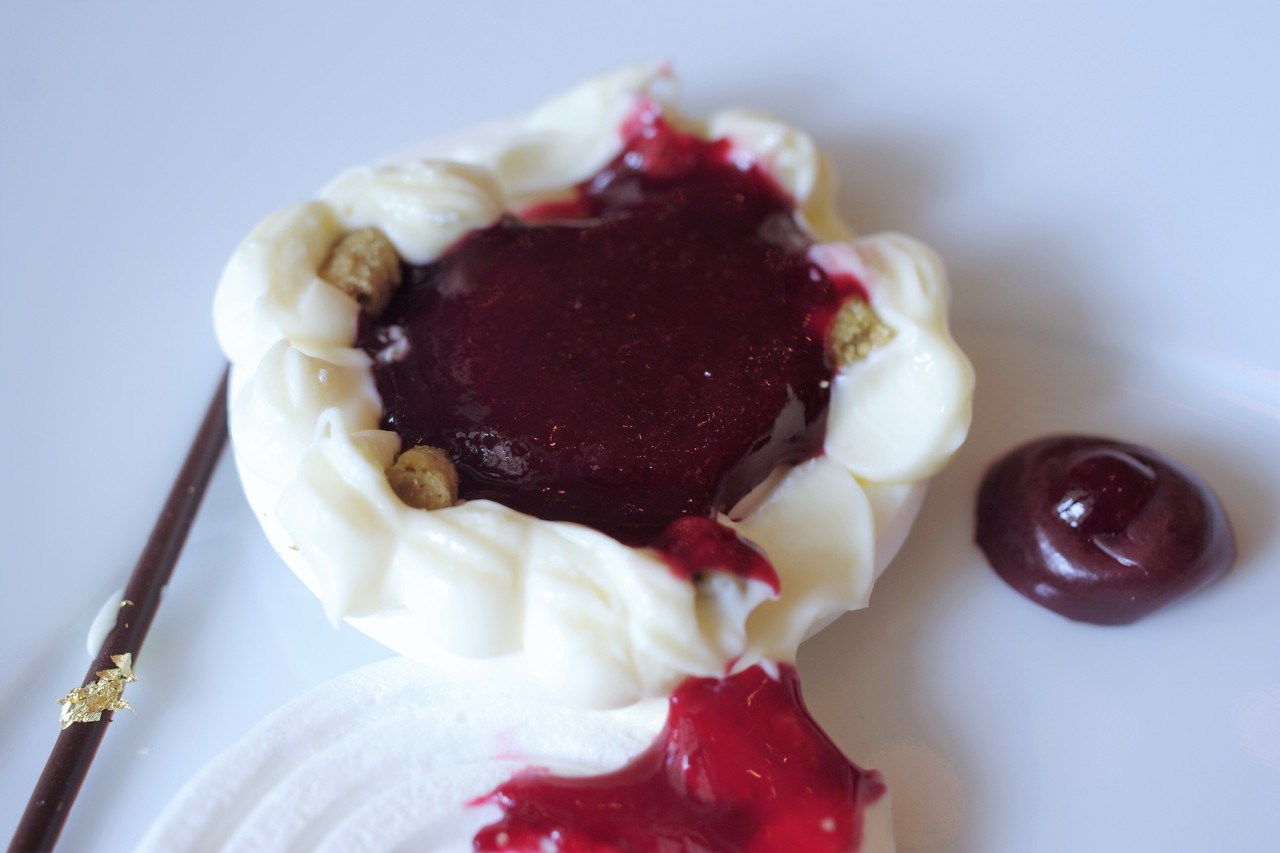 中には甘酸っぱいチェリーのソースが入っています。 メレンゲはサックサクと軽いので、あっという間に食べてしまいます。