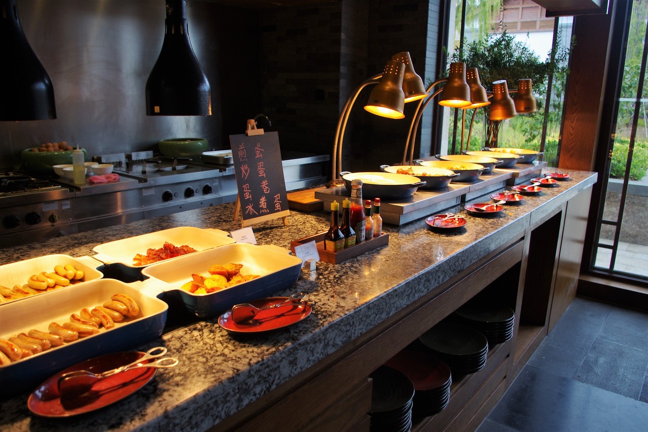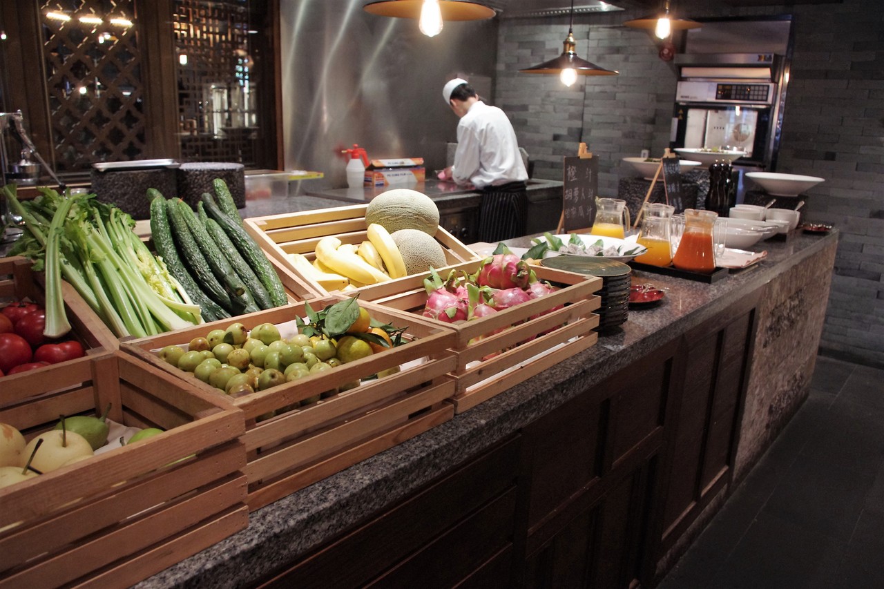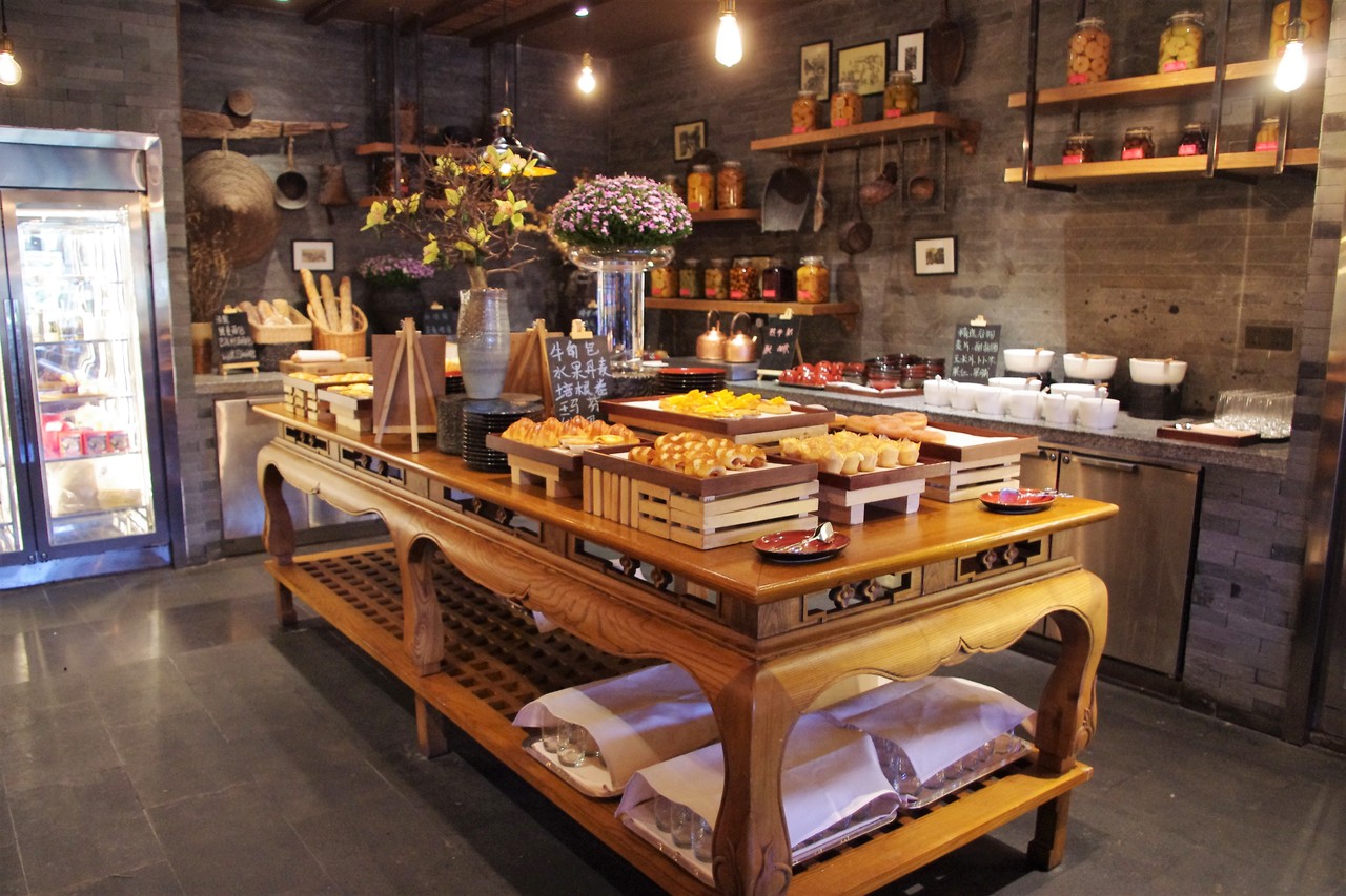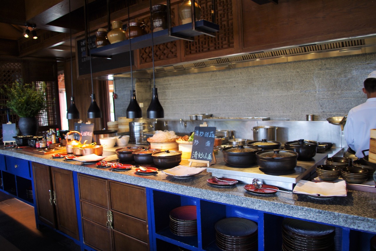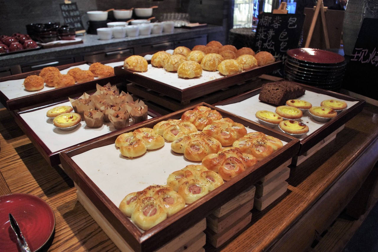 ここの朝食は、オーダーできる(といっても、ヌードルバーに行ってのオーダーですが)種類が豊富だったのと、バンヤンツリー麗江よりもローカル感なく、一つ一つのクオリティは高かったです。あとは、照明が落とされていて、雰囲気もよかったです。