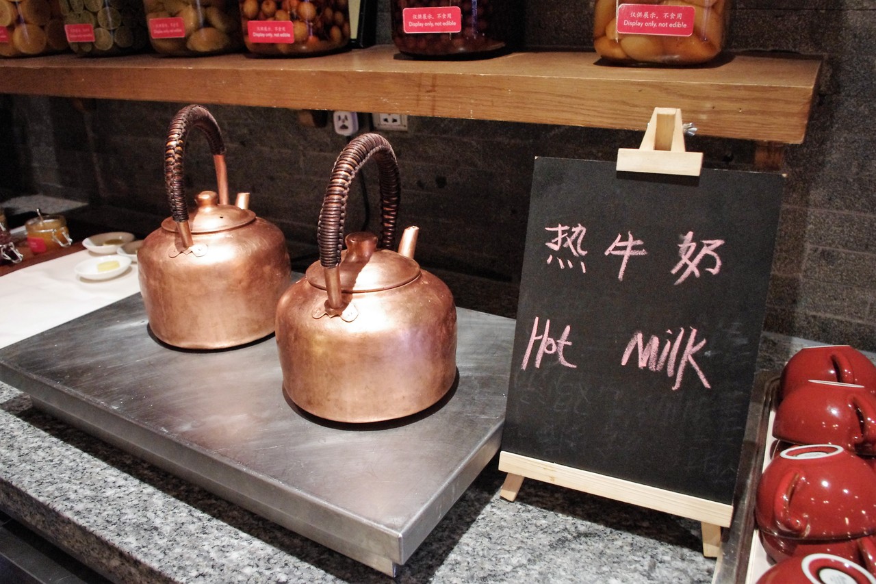 温かい牛乳。これは嬉しいです。カラダを冷やすことを嫌う中華圏ならでは。 確かにシリアルの隣には、冷たい牛乳しか用意されていないことも多いですものね。