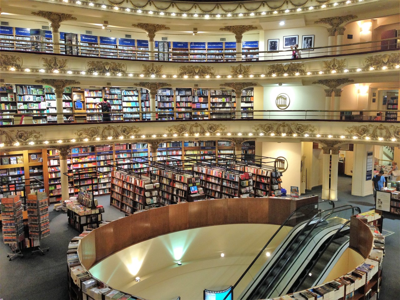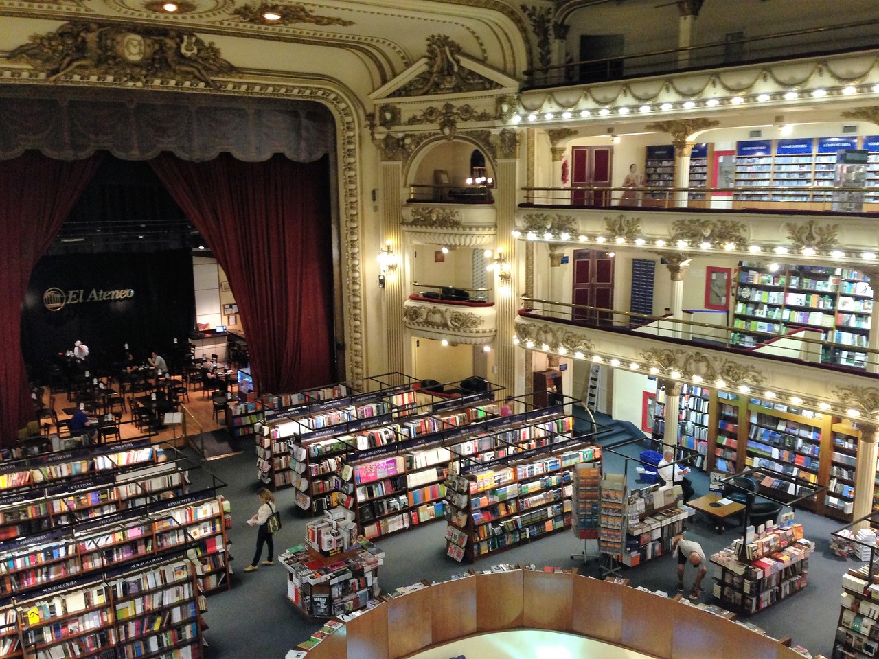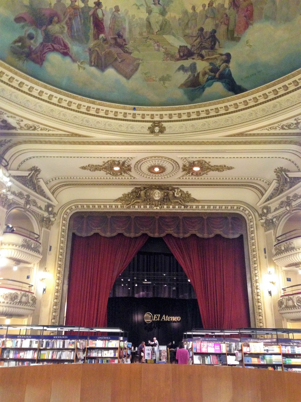 →ブエノスアイレス最古のカフェ・トルトーニを訪れた後、世界で二番目に美しいと言われる本屋さん「El Ateneo Grand Splendid(エル・アテネオ・グラン・スプレンディド)」に向かいました。ちなみに、世界で一番美しい本屋さんは、オランダのマーストリヒトにある、「Boekhandel Dominicanen(ブックハンデル・ドミニカネン)」だそうです。