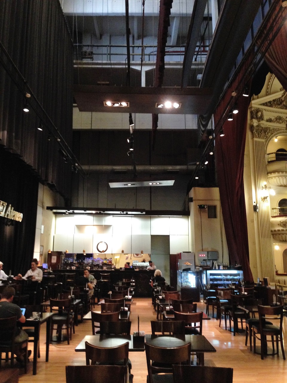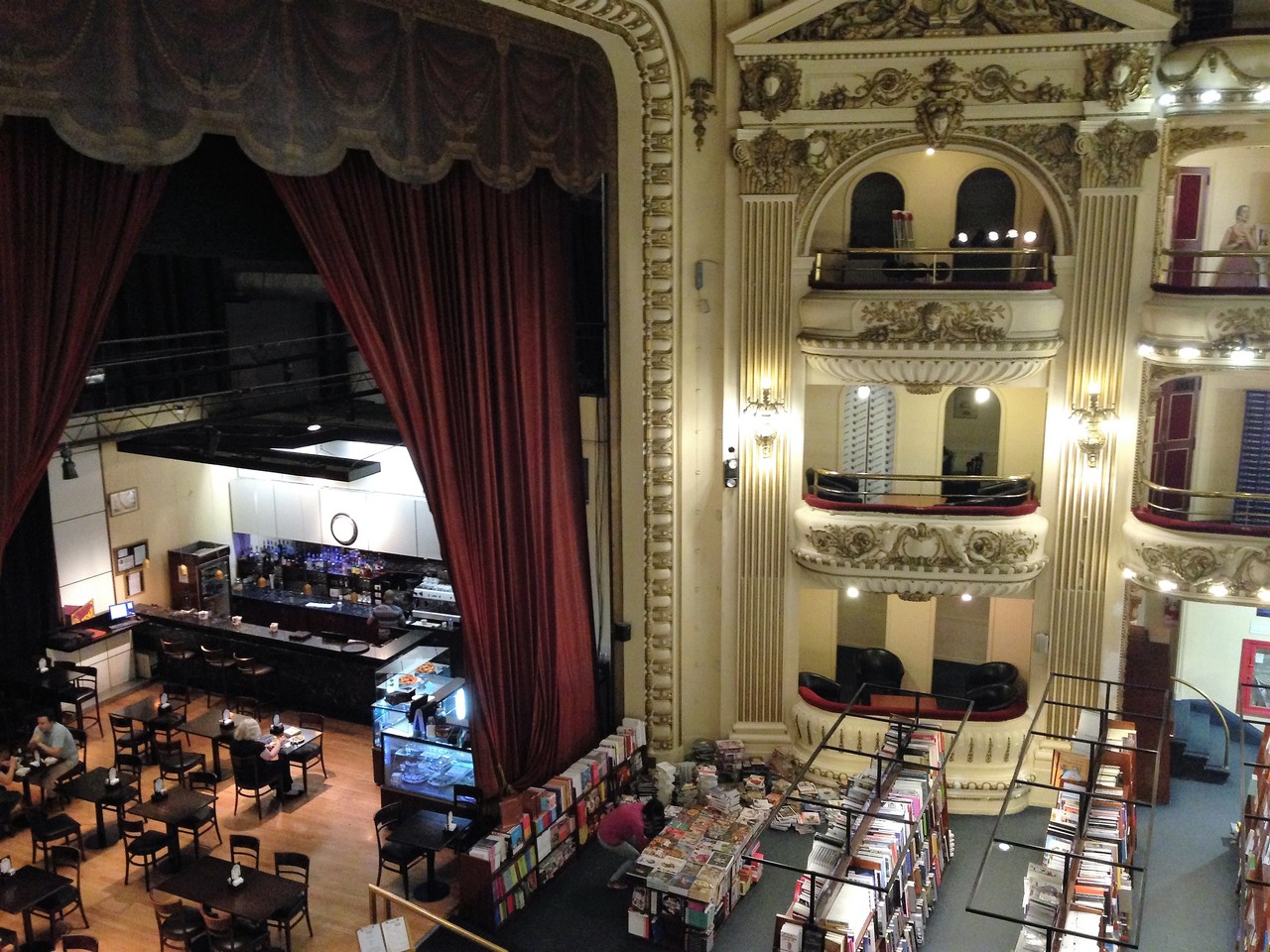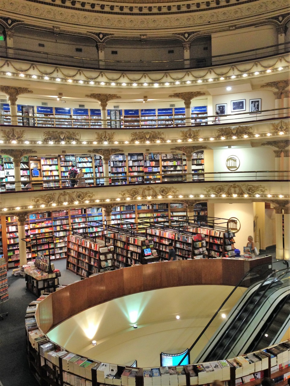 →ブエノスアイレス最古のカフェ・トルトーニを訪れた後、世界で二番目に美しいと言われる本屋さん「El Ateneo Grand Splendid(エル・アテネオ・グラン・スプレンディド)」に向かいました。ちなみに、世界で一番美しい本屋さんは、オランダのマーストリヒトにある、「Boekhandel Dominicanen(ブックハンデル・ドミニカネン)」だそうです。