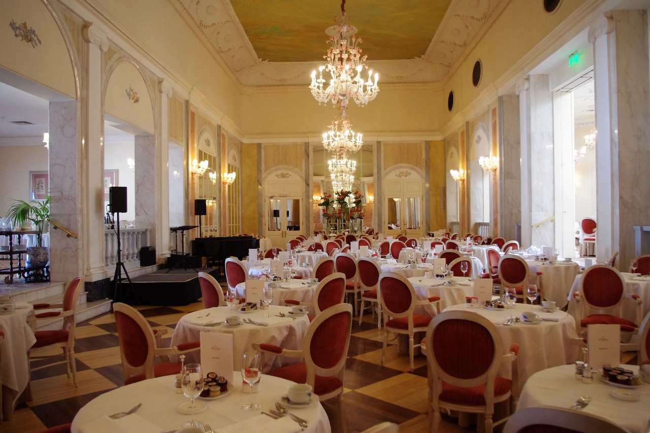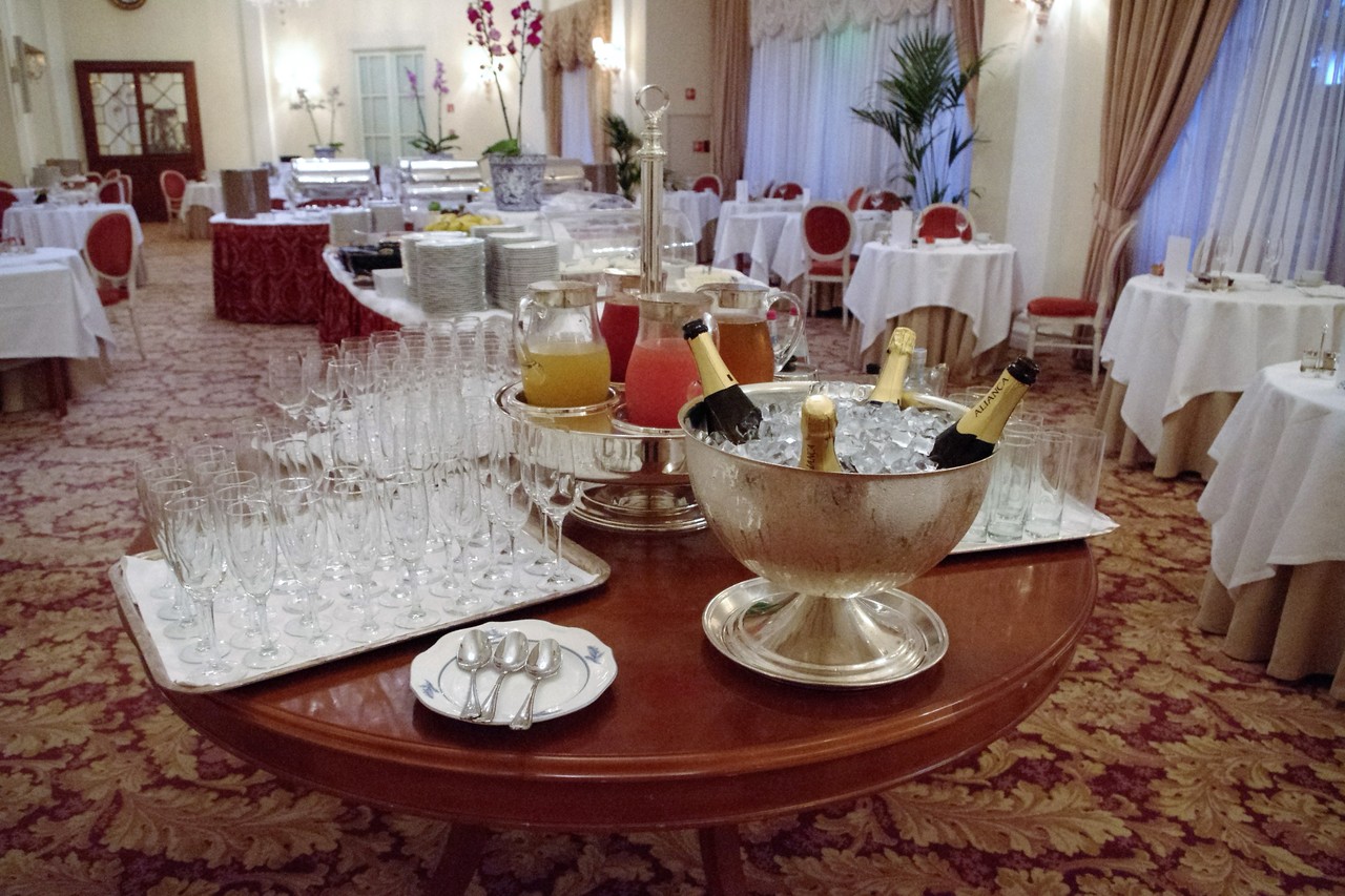 窓際席は人気です。でも、このホテルではどこの施設でもだいたいこのビューを見渡せるので、朝食は、窓のないどっしりしたレストラン内でいただきました。