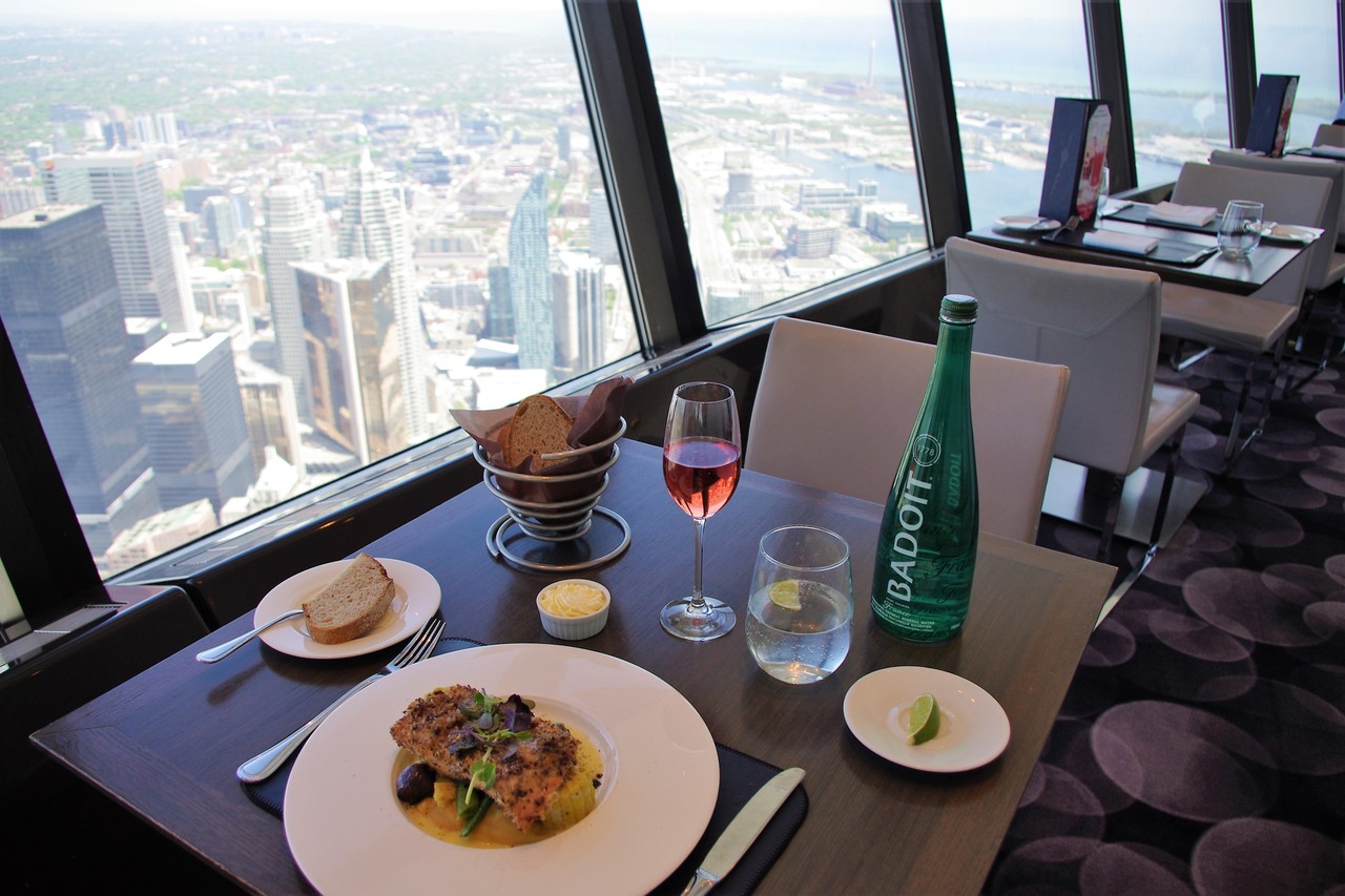 入場券に少しだけ追加すると最上階でお食事がいただけてしまうので(レストランでお食事をする場合、入場料はかからないので)絶対にお食事つきにした方がお得です。 日本ではあまり見かけませんが、カナダのワインもなかなか美味しい!と伺っていたので、今回は全部カナダ産狙いで。 このスパークリングワインもスッキリして美味しかったです。