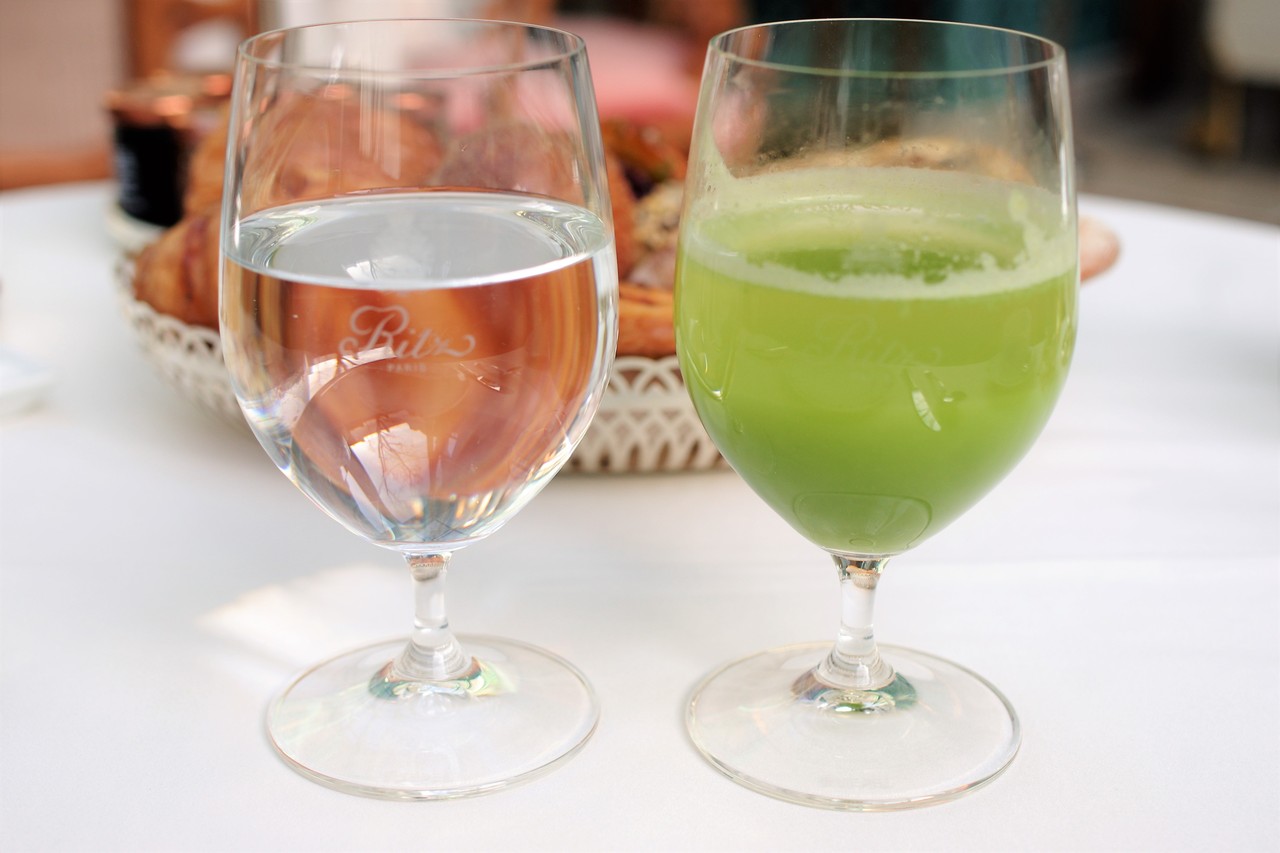 フランス人スタッフが、流暢な日本語で「お飲み物はいかがですか」とおっしゃってくださって、びっくりしました!彼は自称「宮本武蔵」と名乗る方で、名物スタッフらしいです。以降は、彼とは全て日本語でやり取りをさせていただいて、しかも日本人の好みを知り尽くしているようで、とても心強い存在でした。時々、歴史についてお話されても私はチンプンカンプンで^^; それで、このフレッシュジュースはセロリとリンゴとレモンのデトックスジュースだった、と思います。他にもリクエストで、何でもおつくりします!ということでした。