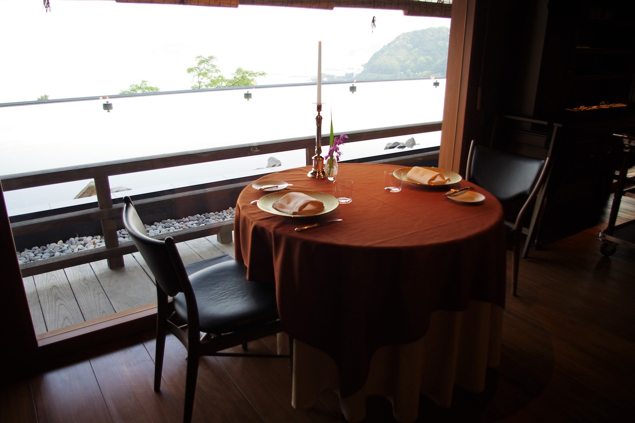 お席は予め決まっていて、窓際は連泊の方が優先されているようでした。 窓際はもちろん海を見渡せて素敵なのですが、でも、その後ろに座るゲストの方も窓際側を向いているため、窓際に座ると後ろのお席の方からお食事の様子が見られてしまう。。。気がしないでもないので、私は後ろ側のお席の方が気が楽でよかったです。