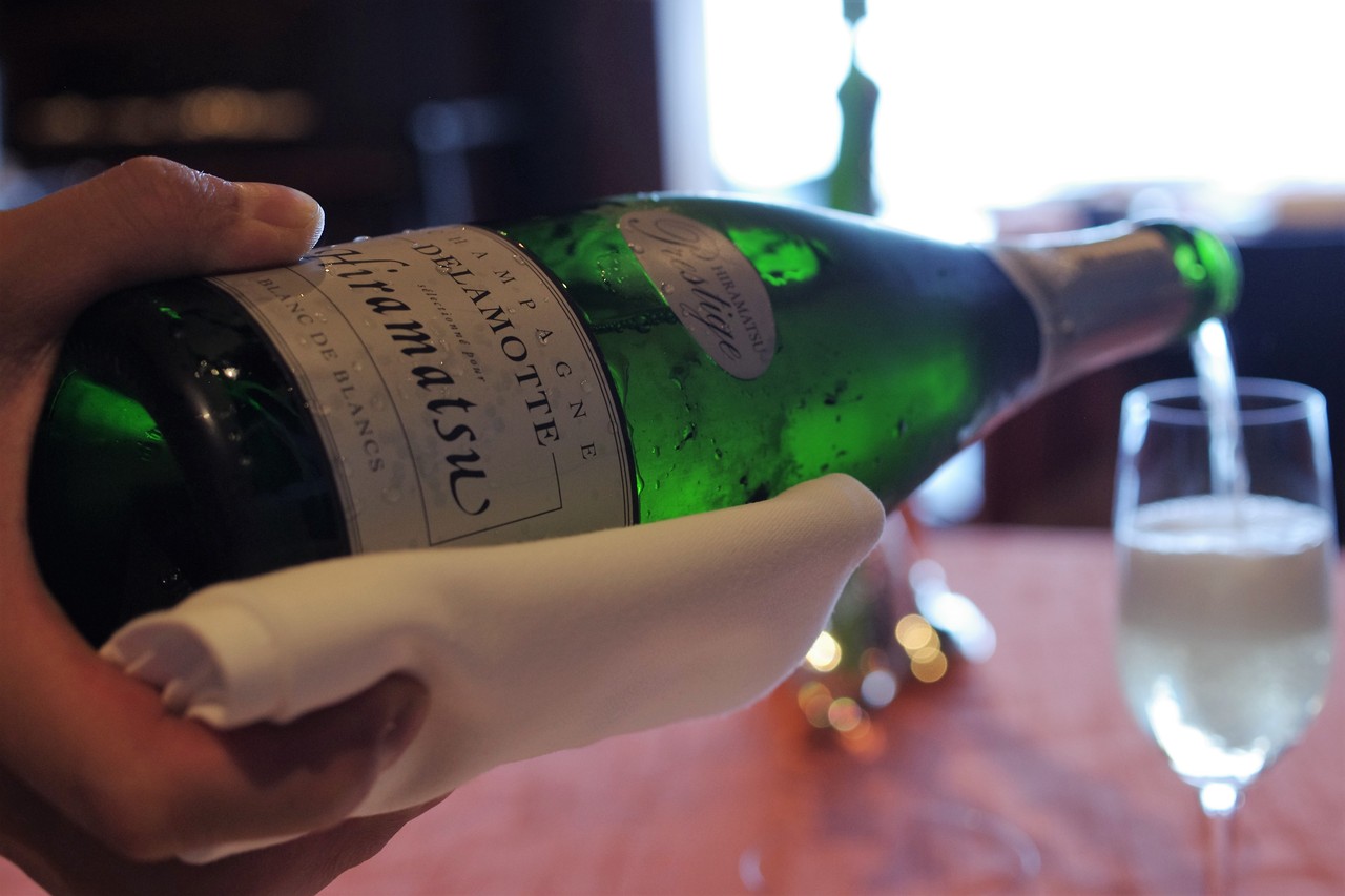 まずは、ひらまつオリジナルのシャンパン「ドゥラモット ブラン・ド・ブラン ひらまつプレステージ」からスタート。
