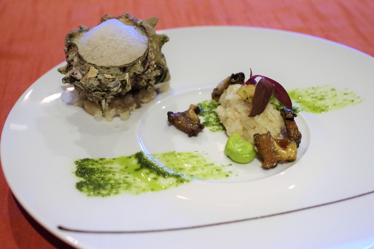 サザエのソテーとそら豆のリゾット。