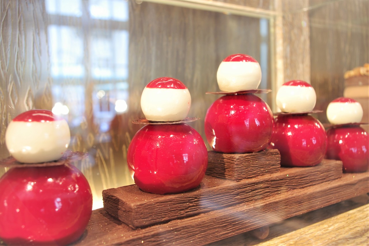目玉のような真っ赤なスイーツは、中にラズベリー(だと思う)のムースやジャムが入った甘酸っぱいデザートで、数あるデザートの中でもお勧めの逸品だそうです。