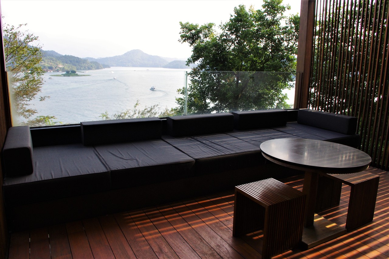 ザ・ラルーの客室から眺めるリーユエタンの景色は、心にしっとり響きます。