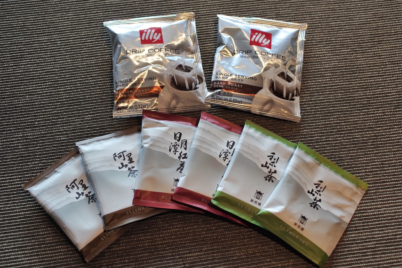 illyのドロップ珈琲と、台湾のお茶の阿里山、リーユエタン、梨山茶。