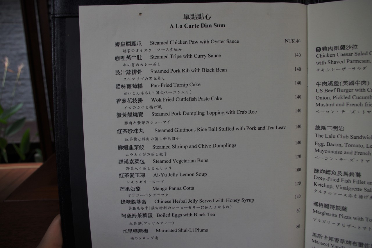 メニューはこんな感じ。セットだけではなく、アラカルトも充実しています。ラグジュアリーホテルとは思えぬ、良心的な価格設定^^飲茶の他、ピザやサンドウィッチなどの洋食も用意されています。