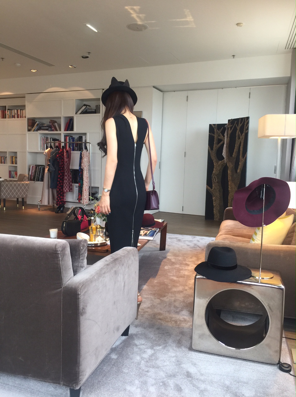 黒のワンピースが大好きなので、これは見た瞬間「あ、これこれ!」と思いました^^ヴィクトリアベッカムのワンピース、初めて着ました。背中の空き具合もそうですが、スカートの後ろのスリットがチャックで調整できるようになっていて、セクシーでした。