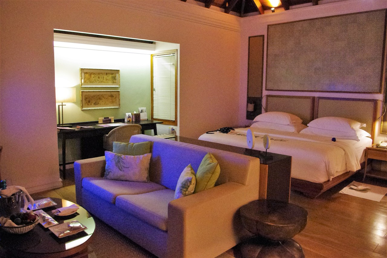 デュシタニ・モルディブで滞在したお部屋は、プール付きのオーシャンヴィラです。やはりモルディブならでは!のオーシャンヴィラは、一番人気が高いようです。が、他のお部屋も見学させていただいたのですが、私的には、人目につかない砂浜が目の前にあり、そこにつながるプライベート・テラスが設置され、緑、海両方を楽しめる「ビーチヴィラ」もなかなか良いな~と思いました。(それはまた後日ご紹介したいと思います)
