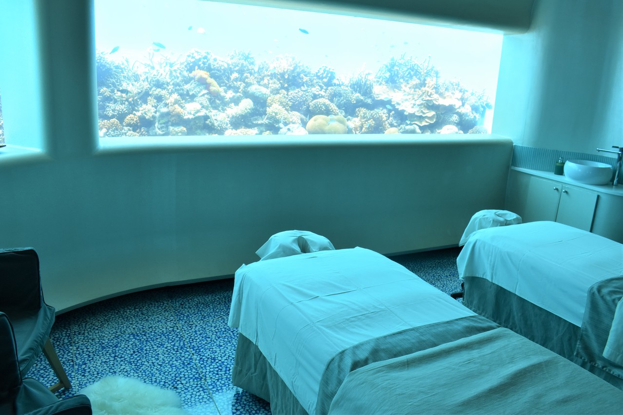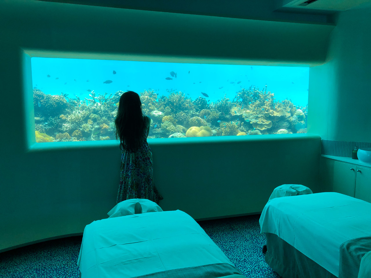 フヴァフェンフシで最も楽しみにしていたのは、もちろん世界初の海中スパです。これは、もう革命的で、モルディブのリゾートに限らず、世界中のリゾートを愛するトラベラーに衝撃を与えたのではと思います。