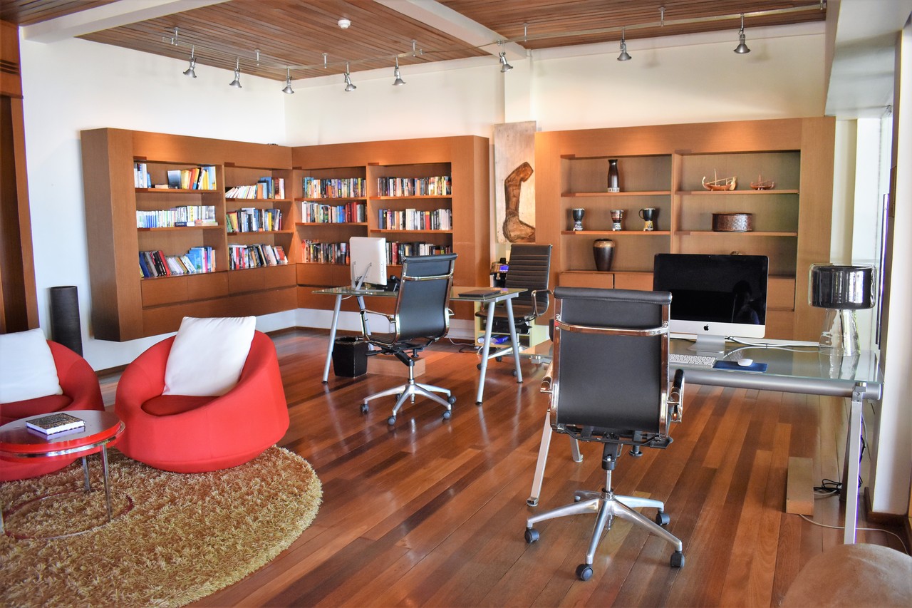 こちらはライブラリー兼パソコンルーム。24時間利用可能。
