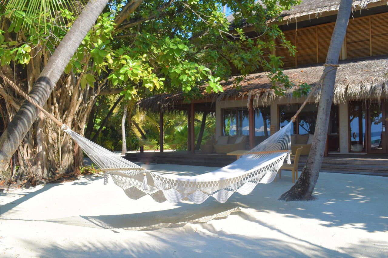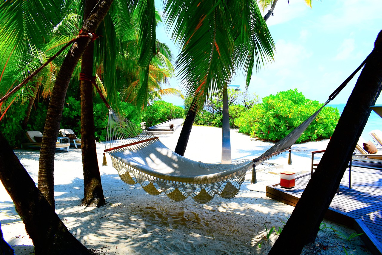 島の様々な場所にハンモック。一度寝入ったら起き上がれない…