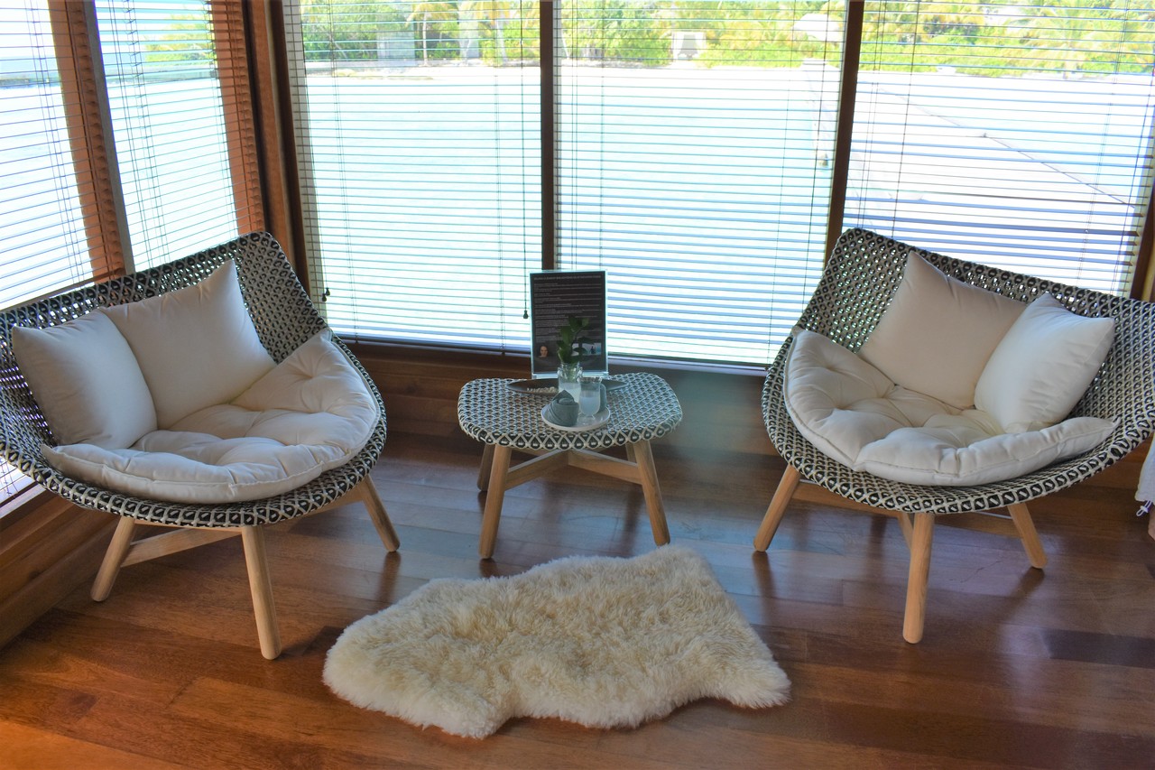2人一緒に、海中トリートメントルームでスパを受けました。はじめに、レモネードをいただきながらカウンセリング。