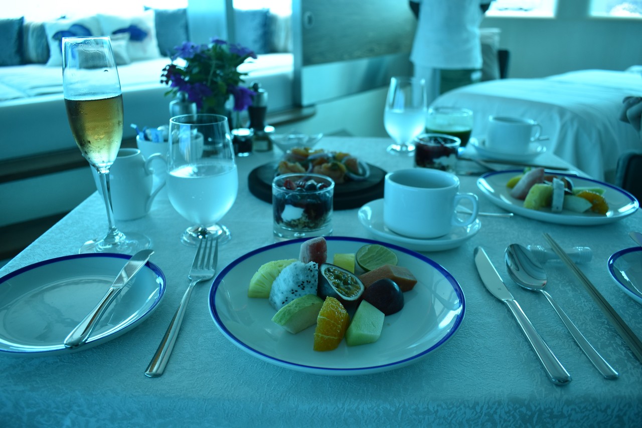 海中でいただく、シャンパン・ブレックファーストです。