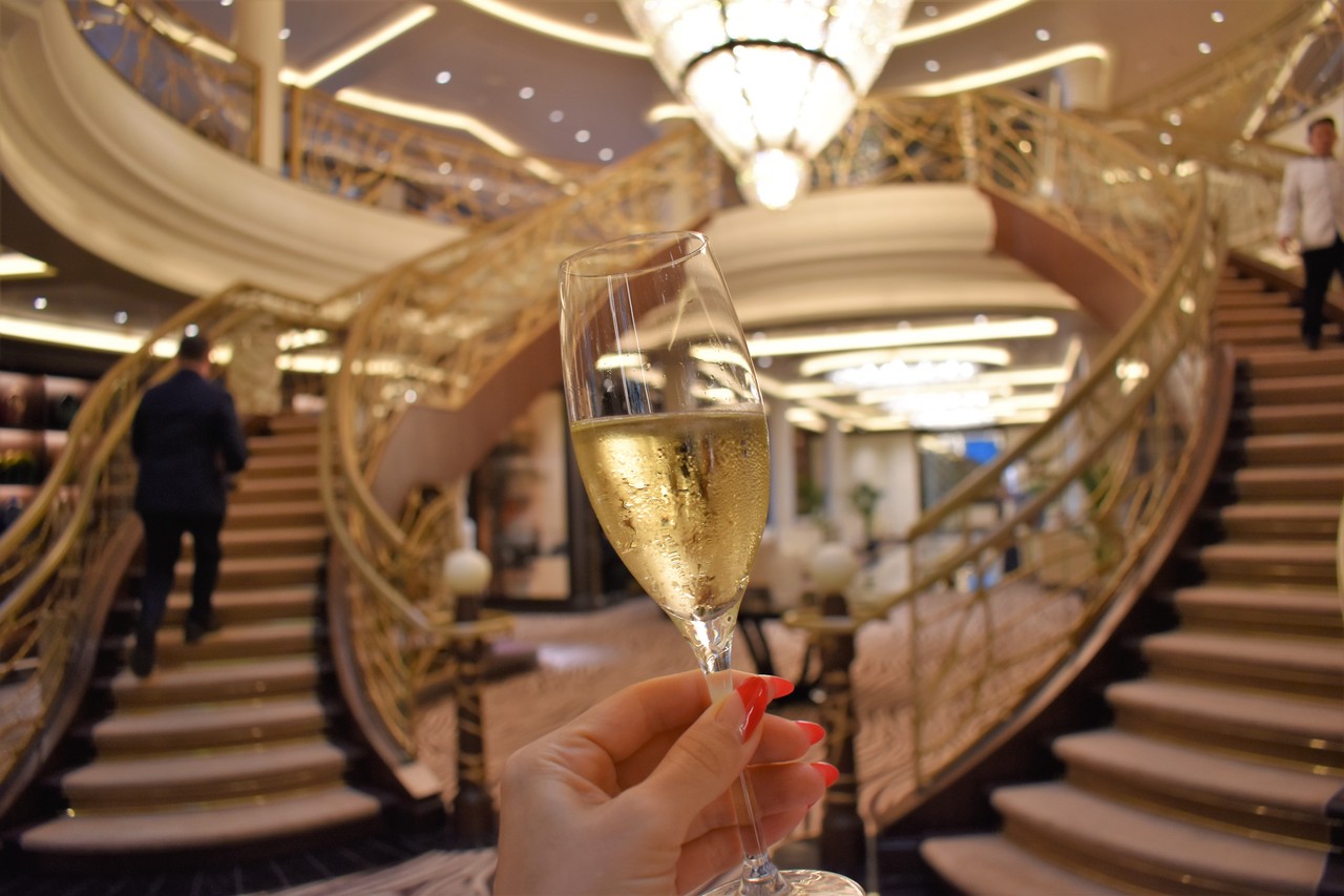 車を降りてから、こちらの船のエントランスまで辿り着くのに、多分10分もかかっていないと思います。そう、この船、ここに限らず、’’待つ’’ ’’並ぶ’’というストレスが全くありません。お食事が美味しいとか、客室が素敵とか、そういうこと以上に、ラグジュアリーさを感じたのは、ここかもしれません。