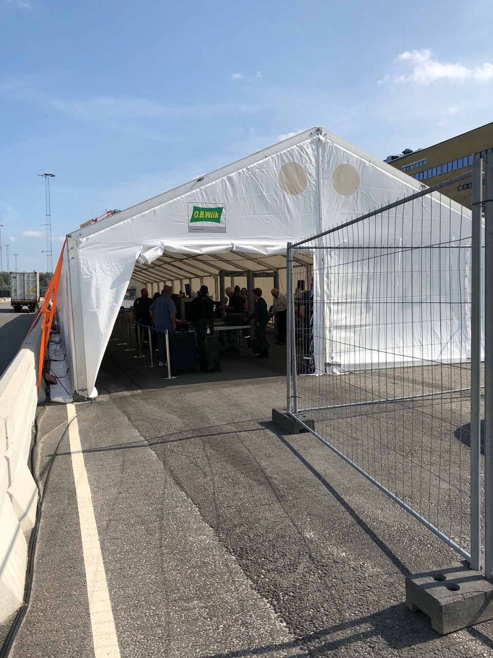 乗船地であるストックホルムのFrihamnenに到着すると、すぐにスタッフの方が、荷物を引き取ってくださいます。その後、テントの中に進み、体調に関してのアンケート記入、セキュリティチェックへと進みます。 当日の出港時間は17時で、チェックインは、12時~15時までの間に行われます。私は、開始早々の12時過ぎに到着したので、混んでいるかな?と思っていましたが、そんなことはなく、サクサクっとスムーズに乗船できました。