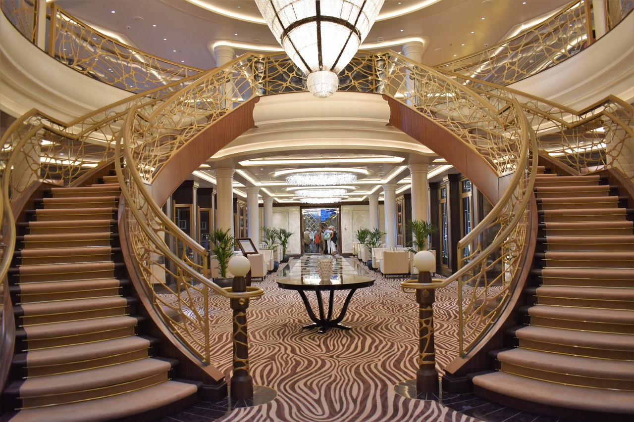 毎日ドレスアップをして、この螺旋階段を優雅に歩くオホホの世界…なんて想像をしていましたが、このエクスプローラーの人気の理由の一つは、’’お家にいるかのように寛げること’’。ですので、ドレスコードは、毎日エレガントカジュアルと、正装する必要がないんですね。(14泊以上のクルーズでは、フォーマルナイトの設定日があるそうですが) ラグジュアリークルーズなのに、堅苦しくなく気楽に過ごせるのは魅力ですよね。