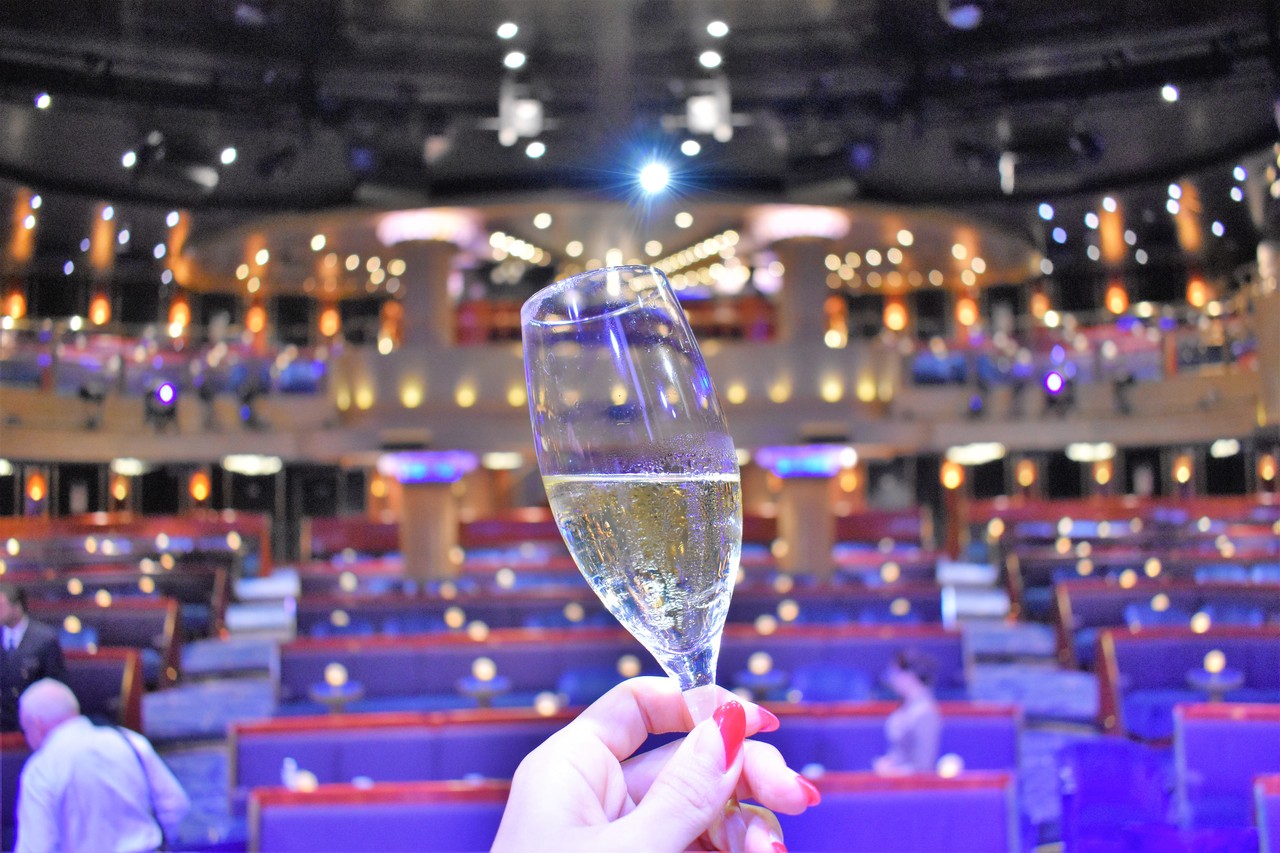 ウエルカムドリンクをサササッといただいて、チェックインの場所となるシアターへ向かいます。