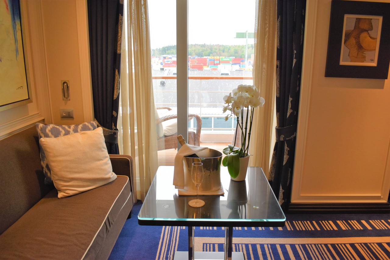 リージェント セブンシーズ クルーズは、現在4隻の客船を所有していますが、 その最高峰の客船が、2016年7月にモナコでデビューしたセブンシーズ エクスプローラーです。他の3隻も、’’全客室スイートのオールインクルーシブのラグジュアリー船’’ではあるのですが、何が違うかと言えば、他の船よりサイズアップしつつも乗客定員を抑え、客船史上最高のスペース・レシオ(お客様1人あたりの船のトン数のことで、セブンシーズ エクスプローラーは、1.3人のお客様に対してスタッフが1人付く体制)を誇っていること。実際に乗ってみて、本当にスタッフの数が多い! ですので、何かをお願いするのに待つ必要が一切なし…いや、むしろ、こちらからお願いする前に、スタッフの方がお声がけしてくださり、いつでも船内のどの場所へ行っても、きめ細やかなサービスを提供してくれました。