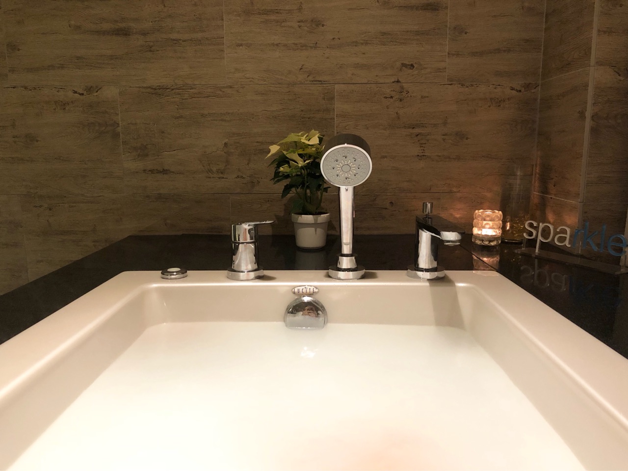施術後は、40分間、自由時間。セラピストががサウナの温度を余熱にしておいてくださり、バスタブの湯もちょうどよい温度に設定してくださっているので、ラクチンです。