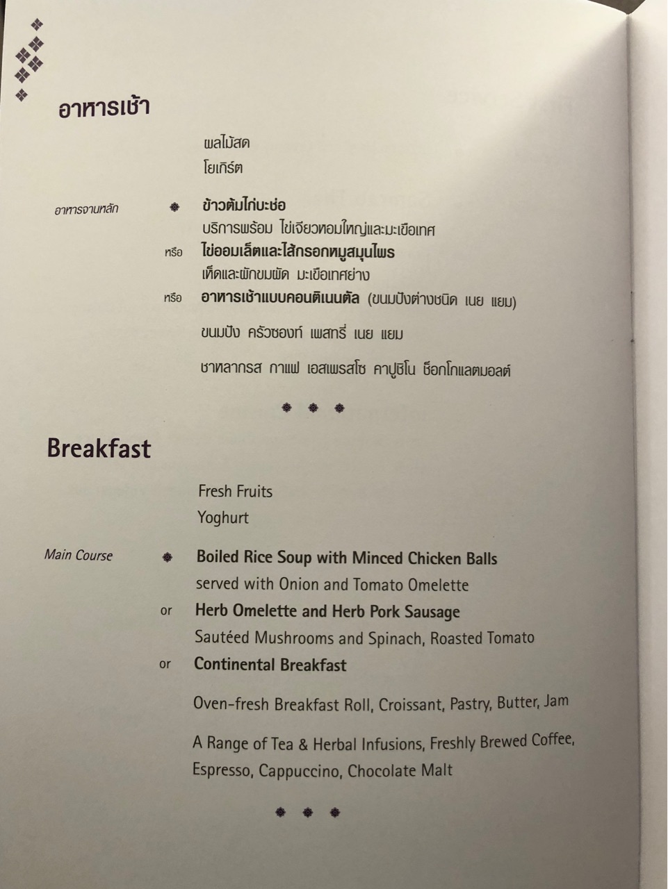 タイ航空 コペンハーゲンーバンコクの機内食です。