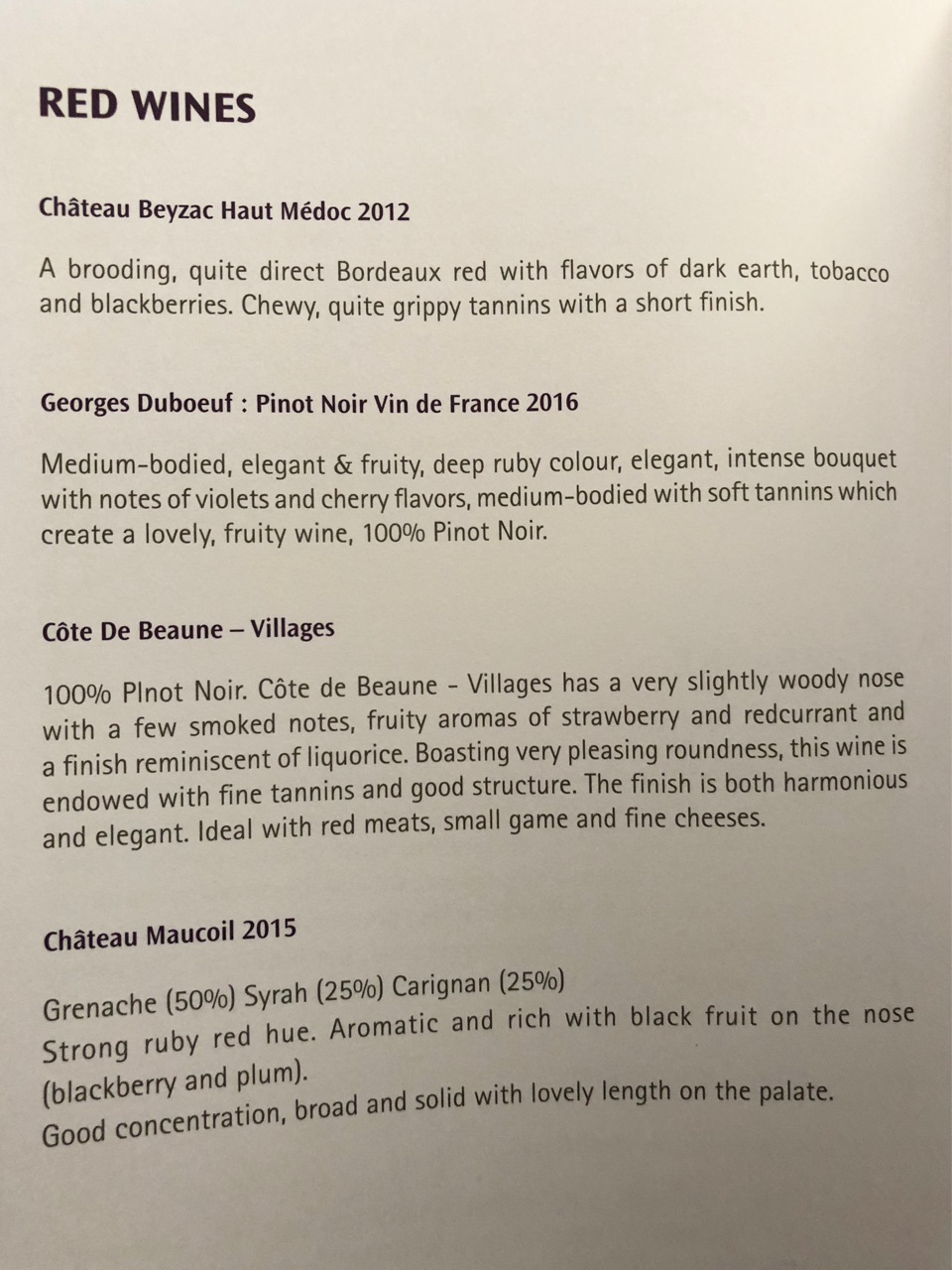シャンパンが2種類、赤4種類に白3種類にロゼ1種類とワインは種類豊富です。