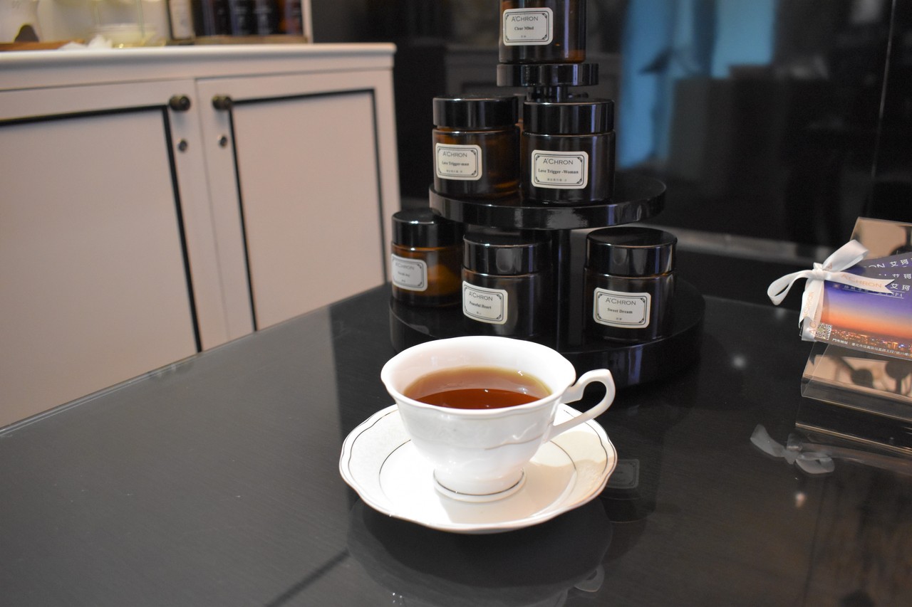 ウエルカムティー(デトックスティーですが、ほんのり甘みがあって美味しかった)をいただきながら、カウンセリングシートに記入します。カウンセリングシート自体は、今は英語版はなく、中国語版のみでしたが、外国人がいらした場合は、英語で説明していただるそうです。