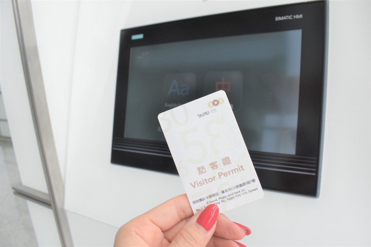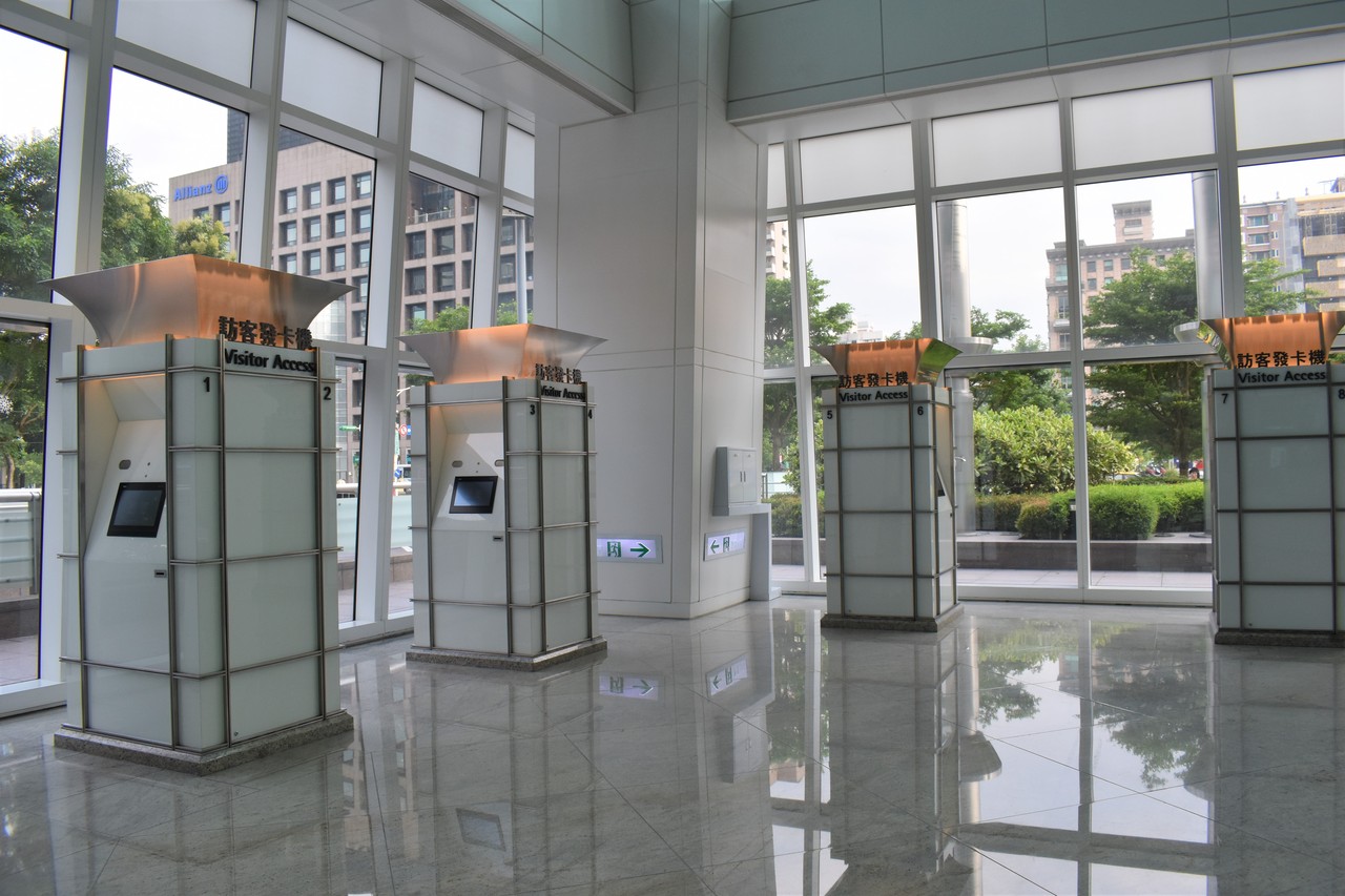 台北101金融ビル内1階にあるサービスカウンターの横に、このようなビジター発行機がありますが、まずはこちらを目指します。もしこの場所が分からない場合は、まずは台北101内にあるインフォメーションセンターの受付で、35階のスパへ行きたいのですが…とお伝えすると、台北101金融ビルへのアクセス方法を教えてくださると思います。