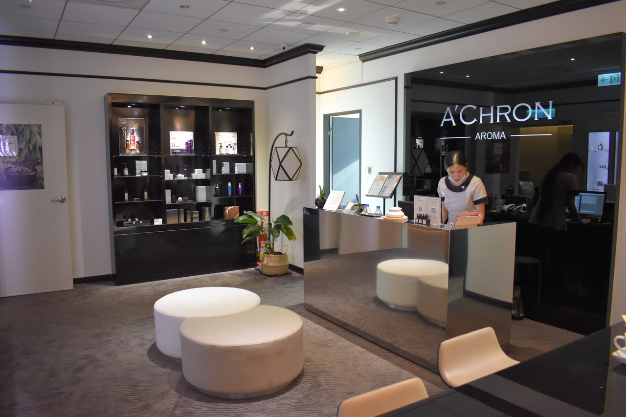 こちらがスパの入り口となります。途中の廊下に表示もされているのですが、気づかずに場所が分からなくとも、35階のフロア内を探索するつもりでグルっと廻ると、必ず辿り着きますので、心配は要らないと思います(^^)