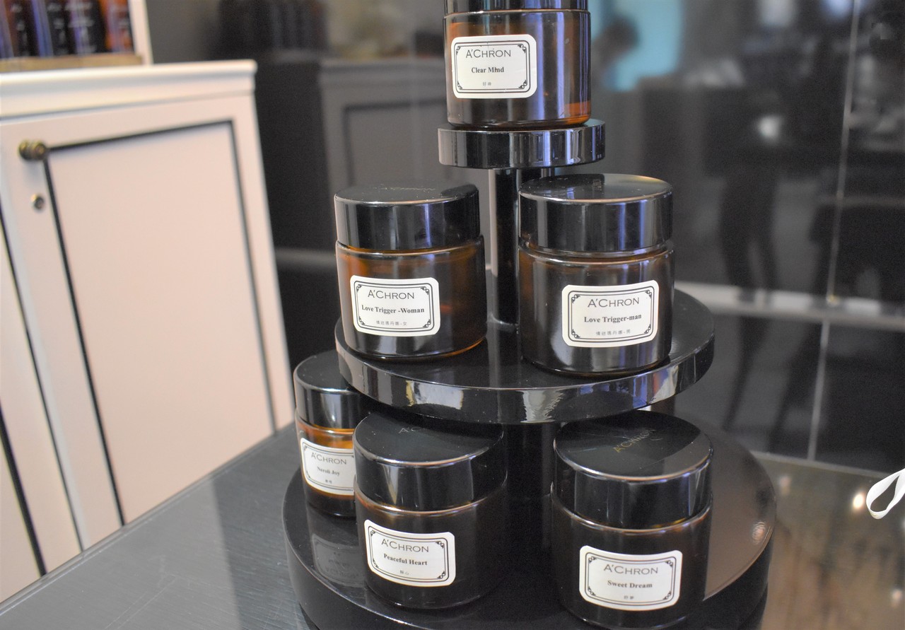 お店では、実際に使用したオイルはもちろん、精油やキャンドルなど、様々なアロマグッズが売っていました。
