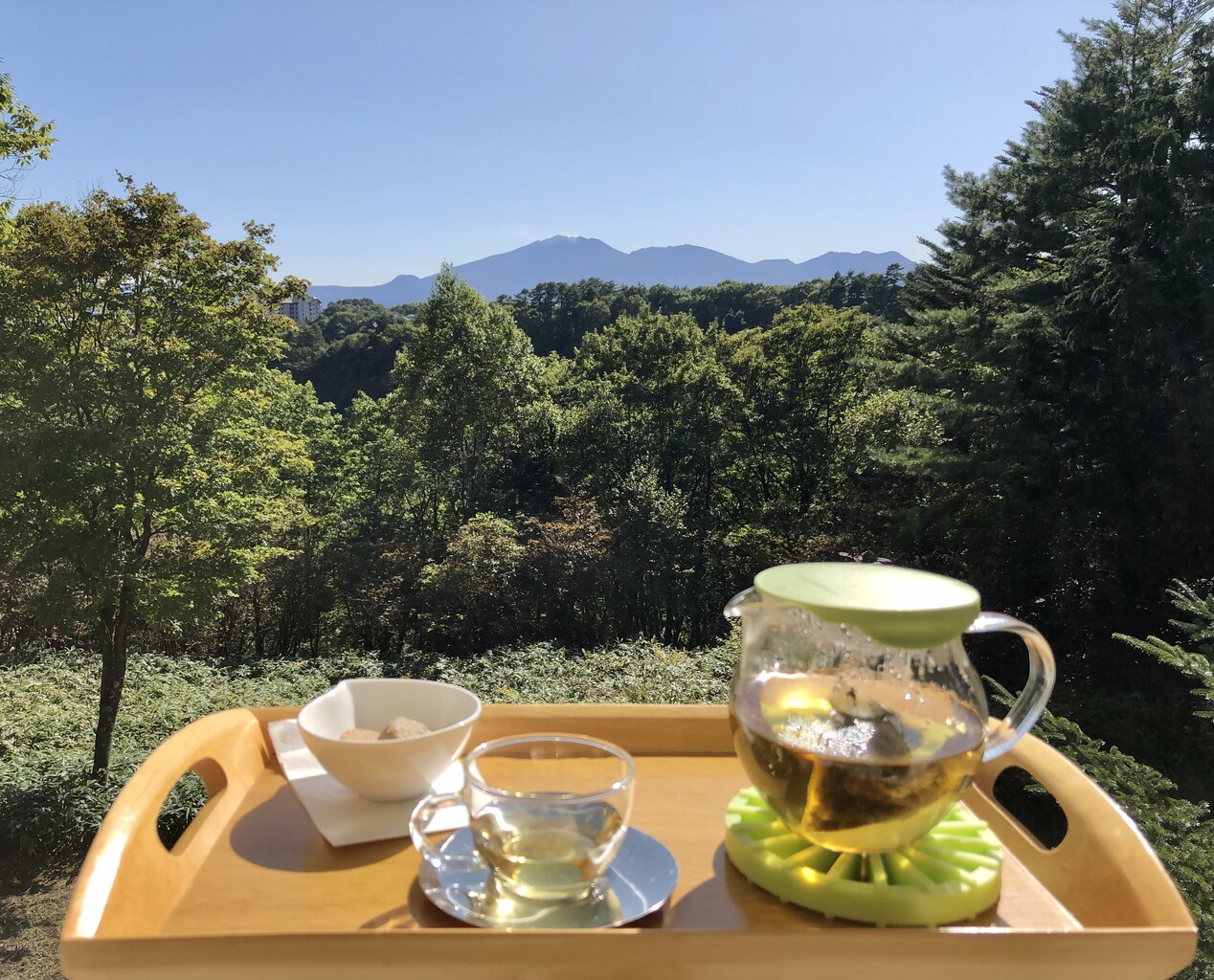 ウエルカムドリンクとともに頂いたオリジナルクッキー。浅間山を眺めながら頂くと、一層美味しく感じました。