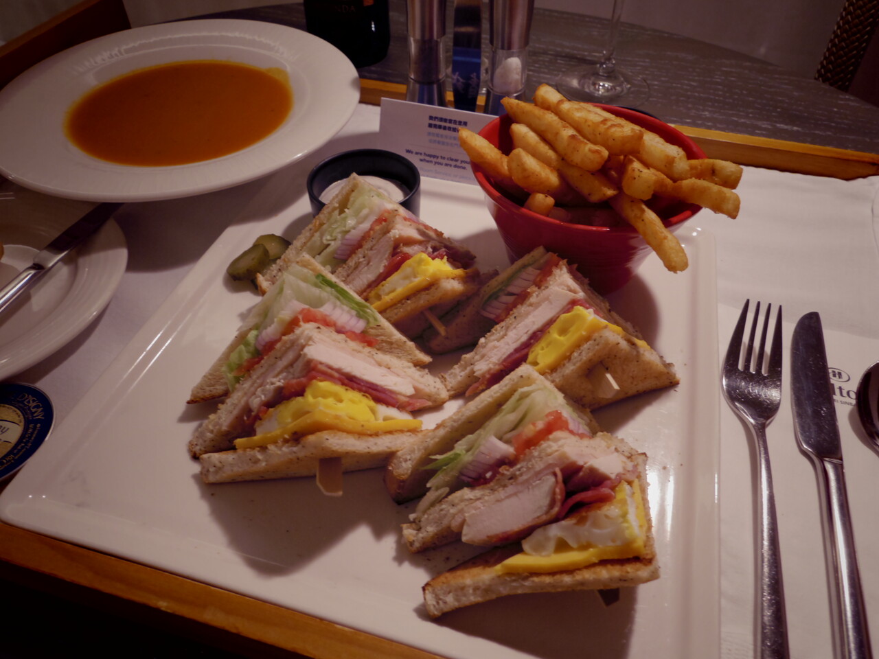 ルームサービスのクラブハウスサンドウィッチ。無難に美味しかったです!
