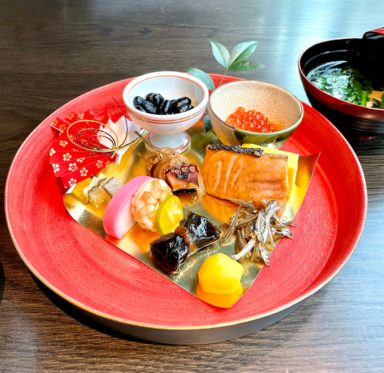 元旦は、おせち料理をいただきました。通常は、朝食時の提供だそうですが、ランチ時にもOKと対応してくださいました。