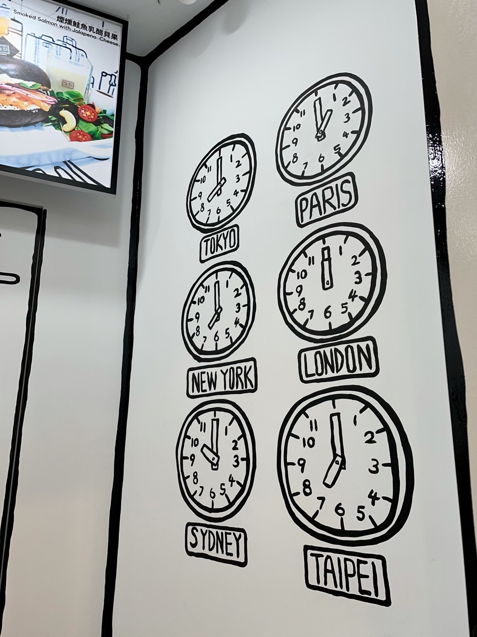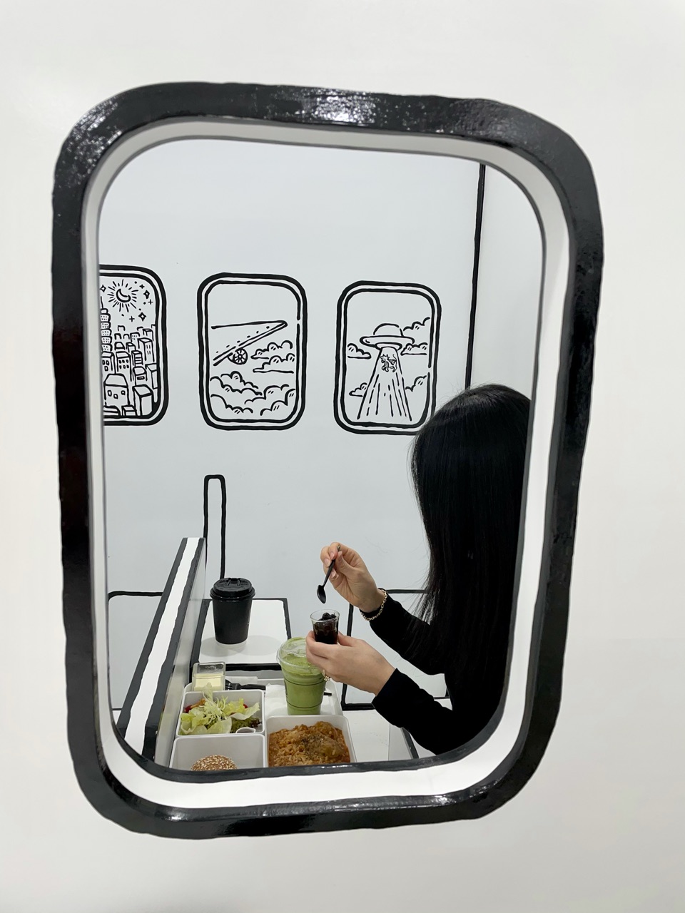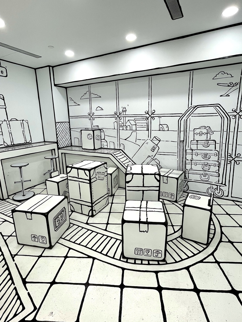マレーシア発祥のマンガ塗りがテーマの二次元カフェ。台湾には、5,6店舗あるようなのですが、全店舗、テーマが違っていて、ここ台北101店は、「偽出国」ができるカフェなのです。